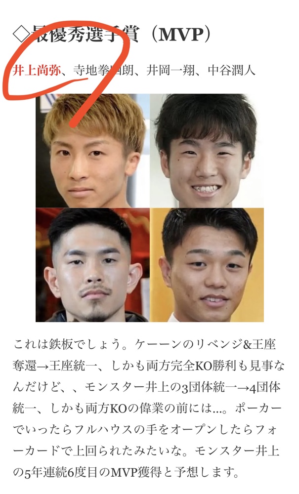 2021年ボクシング年間表彰の答え合わせ MVPは5年連続で井上尚弥